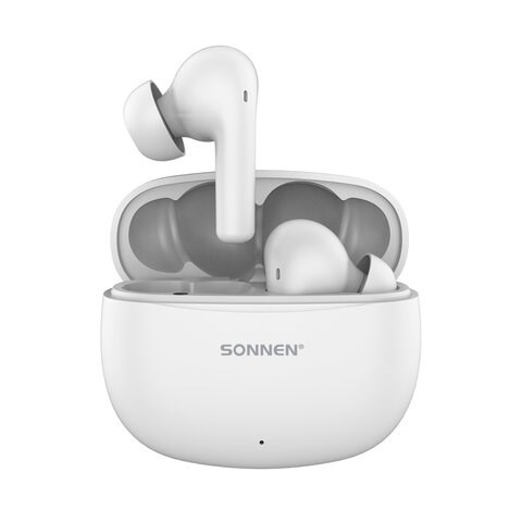 Наушники беспроводные TWS внутриканальные, гибридное шумоподавление ANC + ENC, SONNEN PREMIUM EP-BH34W, Bluetooth 5.3, белые, 514124