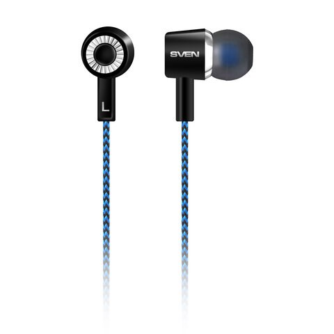 Наушники SVEN E-106, проводные, 1,2 м, вкладыши, черные с синим, SV-015398