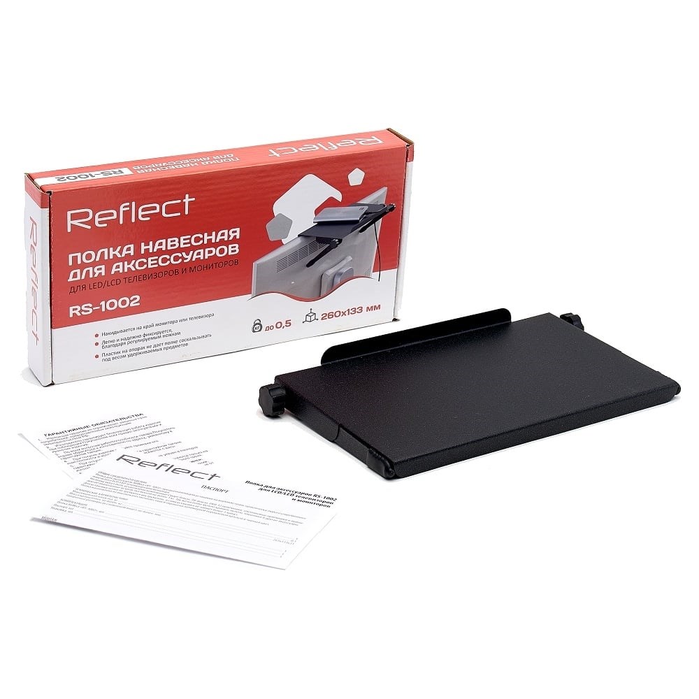 Навесная полка для аксессуаров Reflect RS-1002, до 1.0 кг, черная 27452 предназначена для установки на верхнюю грань почти любого современного панельного LCD/LED телевизора или монитора. Окрашена полимерной порошковой краской, поэтому защищена от повреждений. За счет высокой прочности выдерживает до 1 кг. Для установки полки не требуются инструменты, что экономит время и силы. Дополнительные технические характеристики: Материал: сталь. Максимальная нагрузка: 1,0 кг. Покрытие: полимерная порошковая краска. Цвет покрытия: белый, черный, серый. Габаритные размеры, мм: 275х140х35.
