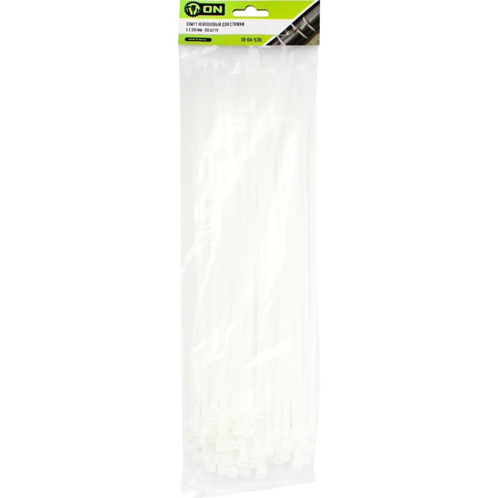 Нейлоновый хомут для стяжки On 5х300 мм, белый, 100 шт./уп. 18-04-530 применяется в автомобилестроении, радиотехнике, для быстрого и удобного проведения электромонтажных работ, крепления баннеров, воздуховодов, труб и других сферах жизнедеятельности.