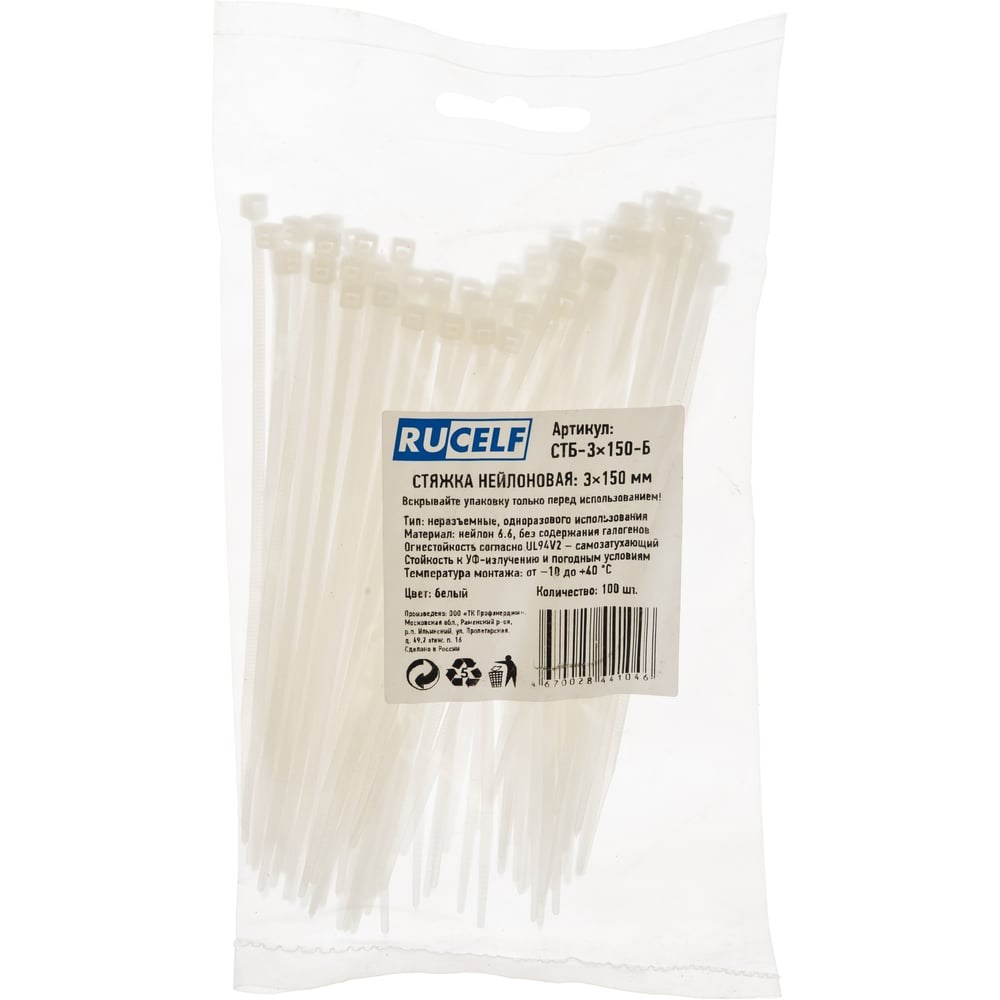 Нейлоновая стяжка RUCELF бел. 3x150 мм СТБ-3x150-Б 00-00005635