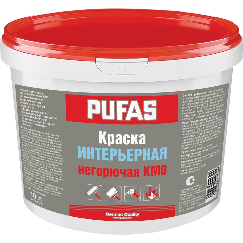 Неморозостойкая интерьерная негорючая краска Pufas КМ0