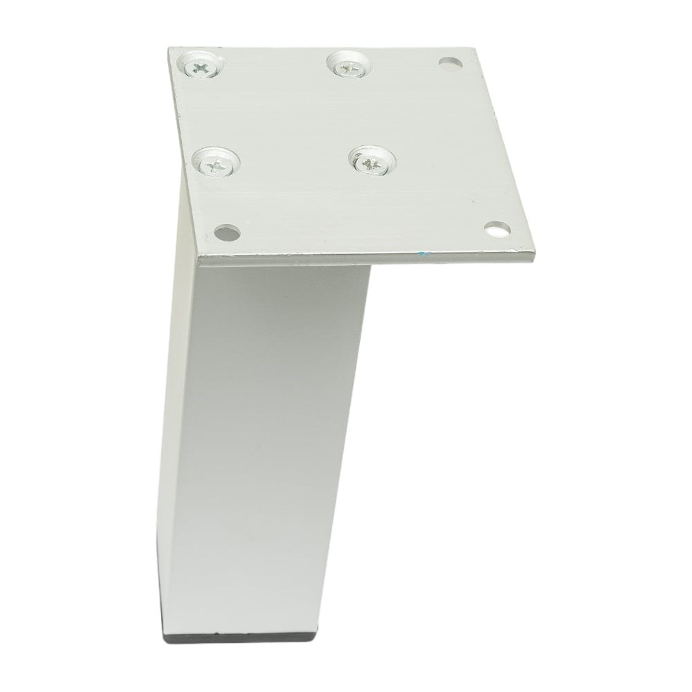 Область применения: используется как опора неподвижной мебели. Применяется при сборке стеллажей, шкафов, тумб, подставок.Материал:алюминий. Особенности:фурнитура не только придает изделию стильный вид, но также обеспечивает высокую устойчивость конструкции. В верхней части расположены четыре отверстия для крепления ножки при помощи шурупов.