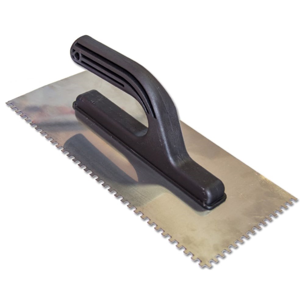 Нержавеющая гладилка НАШ ИНСТРУМЕНТ 130 мм х 270 мм, зуб 10х10, пластиковая ручка 020106-270-010