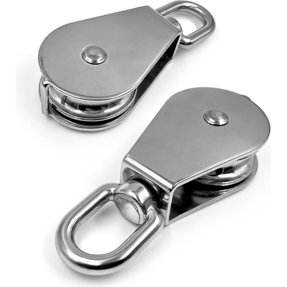 Блок такелажный с латунной втулкой, шкивом и вертлюгом ART 8393 используется для изменения направления движения каната или троса, перемещения или подъема груза на определенную высоту в пределах допустимой прочности, для увеличения силы в грузоподъемном оборудовании. Могут быть использованы в строительных работах, быту, на судах. Блоки выполнены из высококачественной нержавеющей стали А2.
