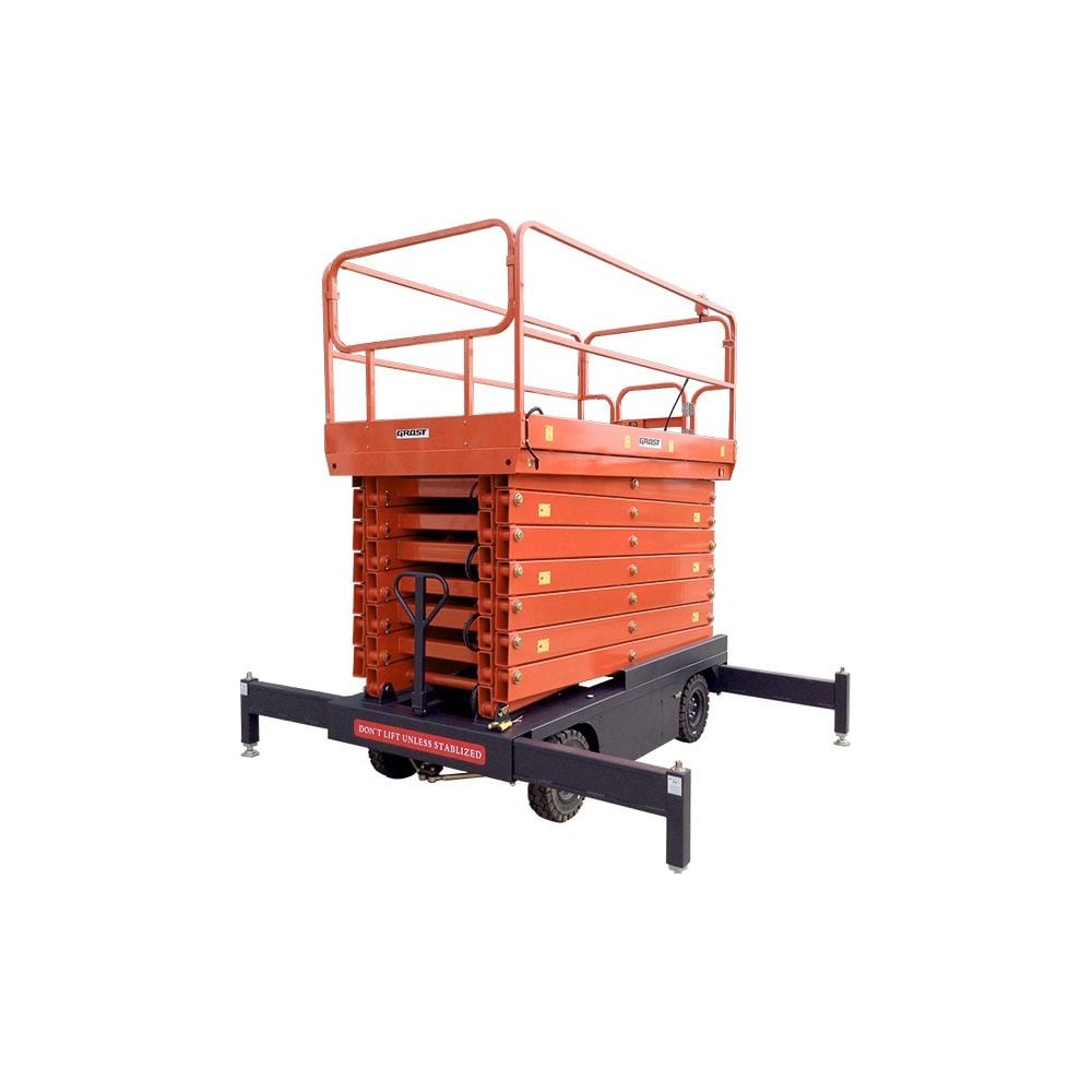 Несамоходный подъемник ножничного типа Grost Tower 500-7 AC 220 211716 широко используется на строительных площадках для подъема грузов и людей с инструментом массой до 500 кг. Осуществляет подъем на высоту до 7 метров. Данная модель оснащена удобной рабочей площадкой с защитными ограждениями. Все это обеспечивает безопасность пользователей при работе на высоте. Дополнительные характеристики: Макс. преодолеваемый уклон, %: 10 Высота платформы в нижнем положении, мм: 1270 Максимальная высота в разложенном состоянии, мм: 8100 Рабочая высота, мм: 9000 Длина силового кабеля, м: 5 Диапазон допустимой рабочей температуры воздуха, °С: -20 - +50 Дорожный просвет (при поднятой платформе), мм: 120 Дорожный просвет (H5), мм: 100 Кнопка аварийного отключения: есть Устройство аварийного спуска: есть Колесная база (Y), мм: 1440 Максимально допустимый рабочий угол наклона, °: 2 Материал передних/задних колес: литая резина Размер задних колес, ДхШ, мм: 360х100 Размер передних колес, ДхШ, мм: 360х100 Высота защитных ограждений (платформы), мм: 1100 Габаритная высота со сложенными ограждениями, мм: 1350 Габаритный размеры в транспортировочном состоянии, мм: (Д)2150 х (Ш) х 1150 х (В) 1380.