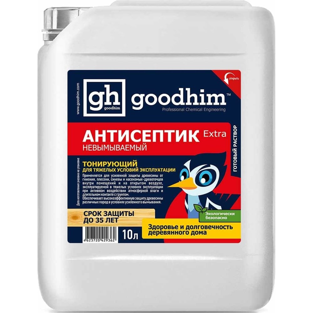 Невымываемый антисептик для тяжелых условий эксплуатации Goodhim Extra тонирующий, 10л 29362 служит для защиты деревянных конструкций и сооружений от плесени, гниения и насекомых. Раствор обладает повышенной устойчивостью к воздействию влаги за счет химического связывания с древесиной, благодаря чему используется для наружных работ. За счет того, что состав не изменяет структуру дерева, возможна дальнейшая обработка конструкций.