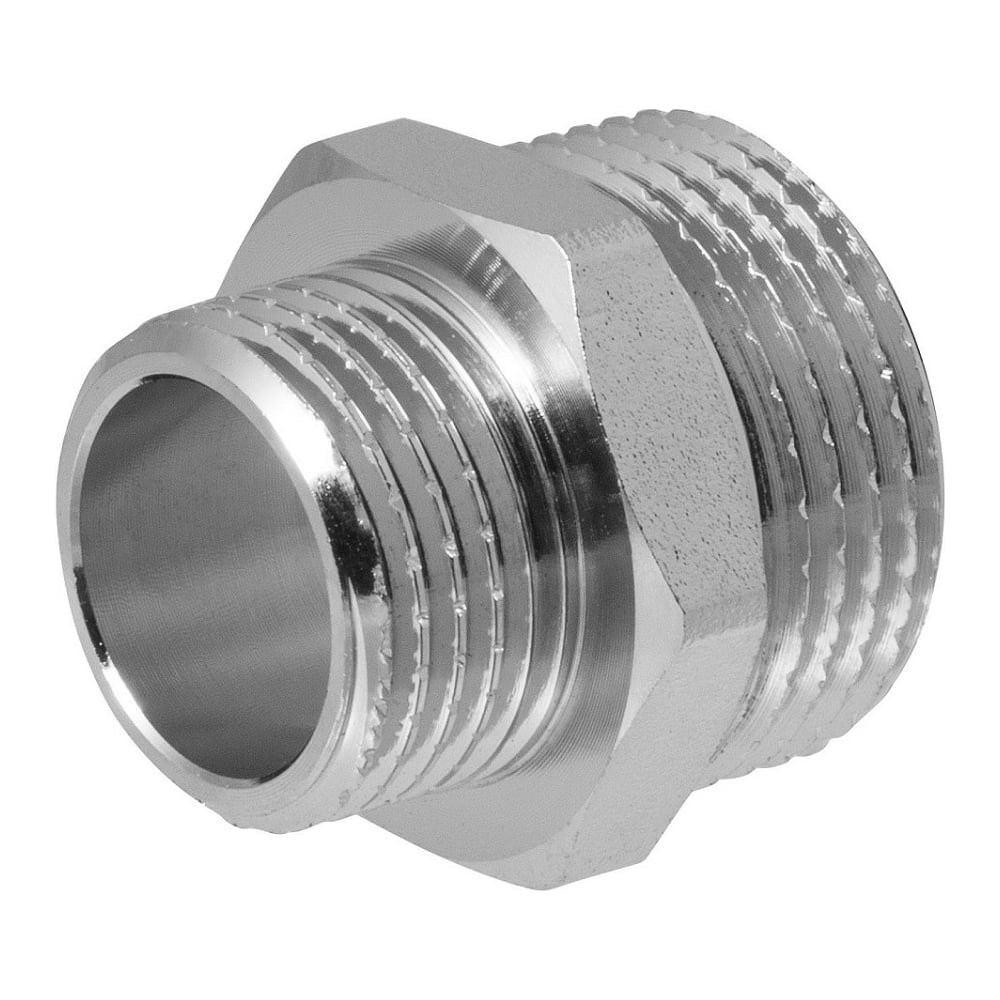 Ниппель - переходник ¾" на ½" с наружной резьбой или бочонок 3/4" на 1/2" н/н MPF ИС.072173 предназначен для соединения элементов трубопровода разного диаметра в системах хол/гор водоснабжения и отопления. Ниппель - переходник ½" на ¾" имеет наружную резьбу и обеспечивает плавный переход с большего диаметра трубы на меньший. Для облегчения процесса монтажа каждое изделие снабжено участком шестигранной формы под гаечный и/или разводной ключ.Ниппель сантехнический изготовлен методом горячей объемной штамповки из высококачественной латуни , благодаря чему подходит для использования в системах питьевого водоснабжения из-за минимального содержания свинца в сплаве. Для защиты от коррозии и придания изделию эстетичного вида как на наружную, так и на внутреннюю поверхности ниппеля резьбового нанесено гальваническое никелевое покрытие.Для получения герметичного соединения со стороны резьбового элемента при установке соединителя необходимо использование таких уплотнительных материалов как сантехнический лен и паста и/или тефлоновая лента (лента ФУМ) и/или ананаэробный герметик.Вся линейка фитингов MPF прошла испытания в соответствии с ГОСТ Р 51372-99 Методы ускоренных испытаний на долговечность и сохраняемость в испытательной лаборатории ВНИИЦИ. По результатам испытаний был получен Протокол исследований подтверждающий предполагаемый срок службы фитингов без проявления признаков коррозии не менее 25 лет.