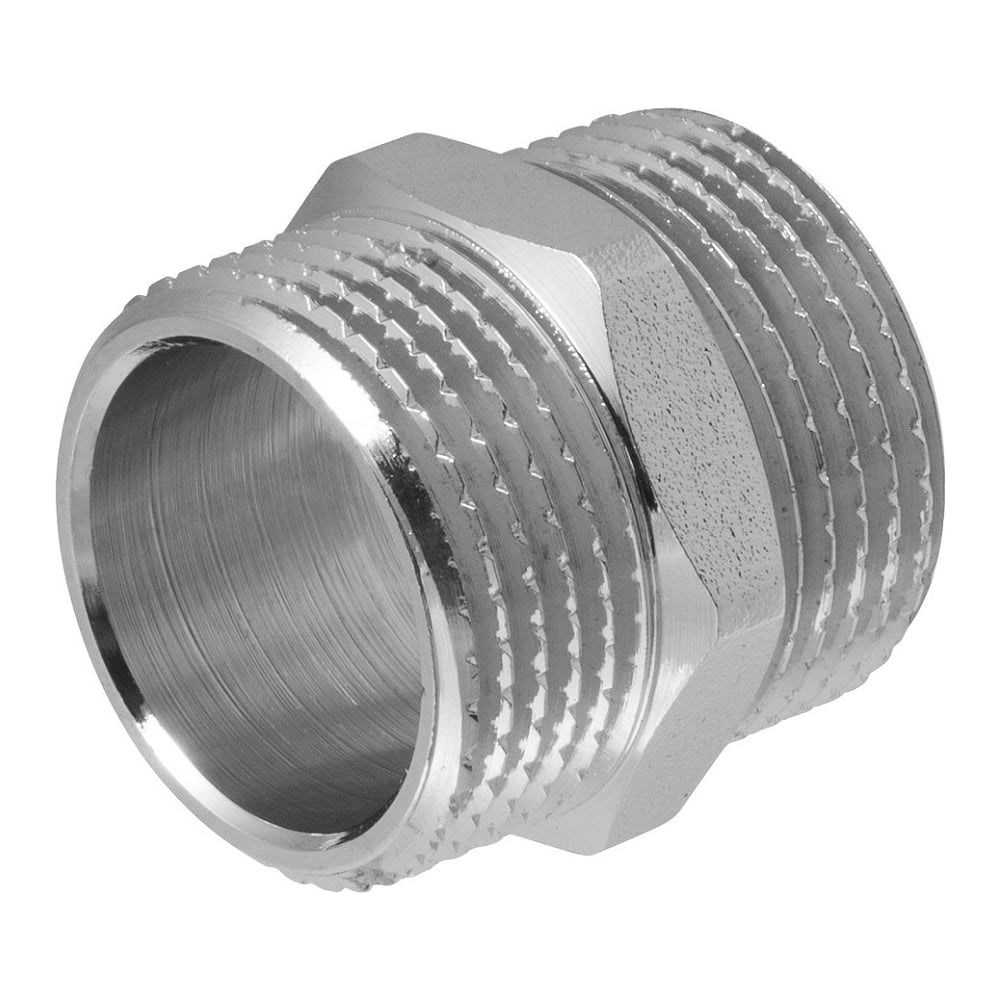 Ниппель сантехнический ¾" на ¾" н/н латунный MPF ИС.072165, также называемый бочонком ¾", предназначен для соединения однородных элементов трубопроводов в системах холодного и горячего водоснабжения, а также отопления. Ниппель имеет форму цилиндра с внешней резьбой. Для обеспечения надежного и герметичного соединения при его установке рекомендуется применять уплотнительные материалы: сантехнический лен с пастой и/или тефлоновую ленту (ФУМ-ленту) и/или аэробный герметик.Ниппель ¾" изготовлен методом горячей объемной штамповки (ГОШ). Бочонок выполнен из высококачественной латуни CW617N и имеет никелированное покрытие толщиной не менее 7 мкм, что обеспечивает устойчивость к коррозии и допускает использование фитинга в системах питьевого водоснабжения благодаря пониженному содержанию свинца в сплаве. Для удобства монтажа каждый ниппель оснащен участком шестигранной формы под гаечный и/или разводной ключ.Соединение является разъемным, что позволяет при необходимости проводить обслуживание участка трубопровода, а также дает возможность повторного использования резьбового ниппеля. Вся линейка фитингов MPF прошла испытания в соответствии с ГОСТ Р 51372-99 «Методы ускоренных испытаний на долговечность и сохраняемость» в испытательной лаборатории ВНИИЦИ. По результатам испытаний получен протокол, подтверждающий предполагаемый срок службы фитингов без проявления признаков коррозии не менее 25 лет.