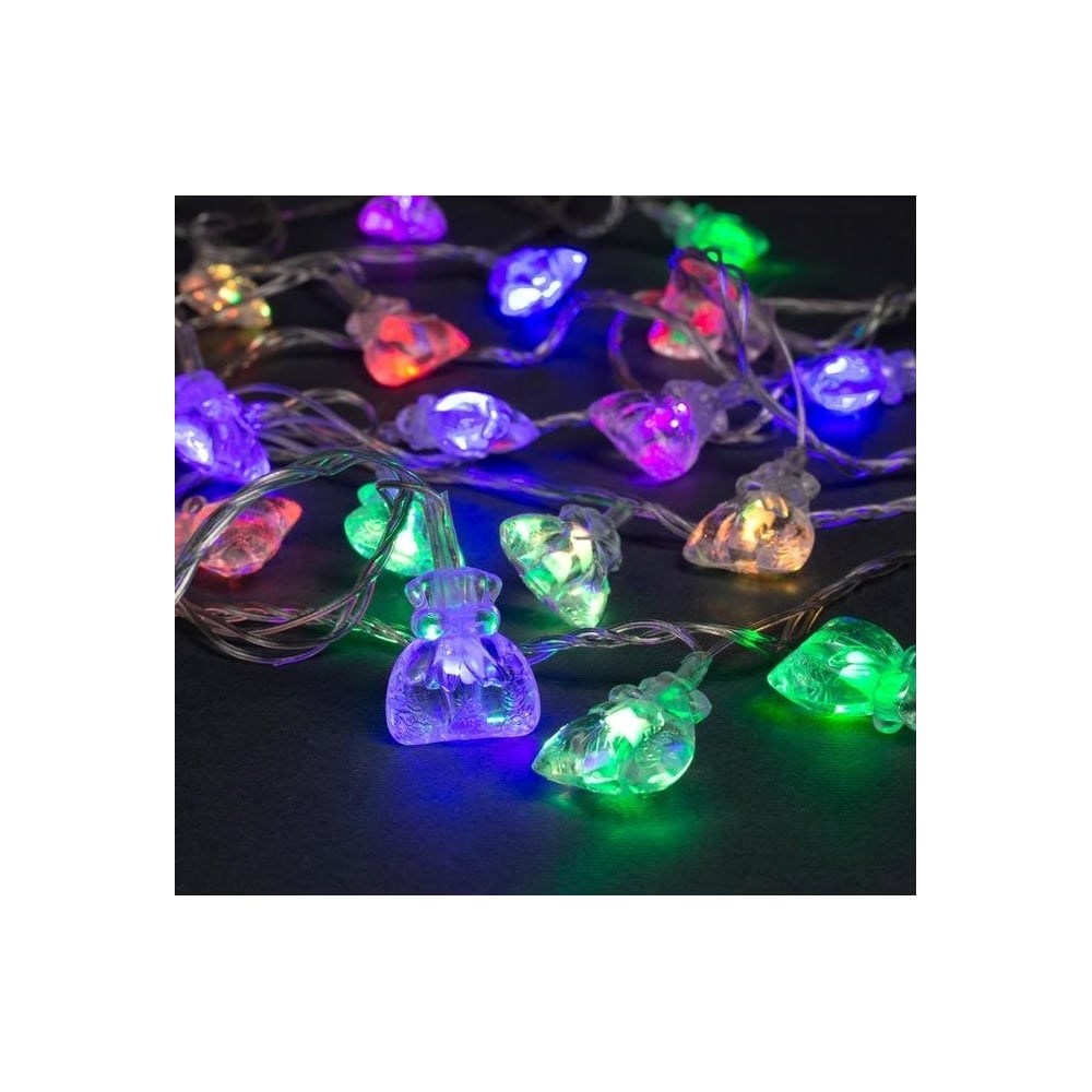 Нить Luazon DCR 5 м, с насадками Подарок, IP20, Н.С. LED-20-220V, моргает, мульти 1080396 подходит для создания эффектных интерьерных украшений и зонирования помещения: ширмы, шторы, эффект звездного неба под потолком и многое другое. Применяется в декорировании лестниц, колонн, при изготовлении световых фигур, как фон при фото и видеосъемке. Степень защиты этого изделия соответствует стандарту IP20, что подразумевает использование только в сухих и проветриваемых помещениях.