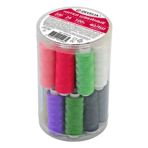 Набор ниток DEVELIA станет незаменимым помощником для каждой хозяйки, которая занимается пошивом на любительском уровне. Также нитки пригодятся и в бытовых целях: подшить шторы или джинсы/брюки, отремонтировать одежду или подогнать ее по размеру и пр. Кроме ремонта одежды нитки DEVELIA отлично подойдут для других видов рукоделия - шитья аппликаций, пришивания бисера, бусин и иной фурнитуры, плетения, создания браслетов и украшений, пришивания бирок, создания мягких игрушек и т.д.