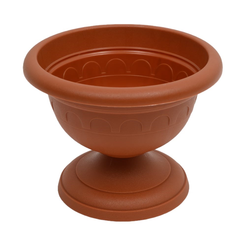 Пластиковый вазон отличается простотой исполнения и изяществом форм, неприхотлив в уходе, не подвержен деформациям, ударопрочный. Имеет сборную конструкцию из 2 частей: чаши и ножки. Изделие выполнено в классическом стиле и прекрасно подойдет для выращивания цветов и однолетних растений. Вазон легко впишется в композицию дома или сада и будет служить красивым украшением.