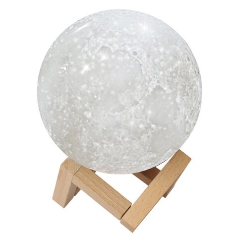 В комплект входит светильник-луна диаметром 15 см, подставка для светильника из натурального дерева, пульт управления, в который уже вставлена батарейка, USB-кабель для зарядки светильника, а также руководство пользователя.