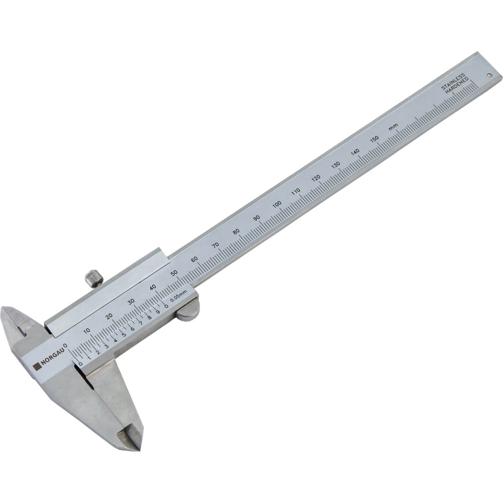 Штангенциркуль нониусный 0-150 мм, тип NCV-1505, NORGAU 0400050155 предназначен для измерения внутренних и наружных размеров детали. Диапазон измерения 0-150 мм, с погрешностью 0,05 мм.Штангенциркуль и рамка выполнены из закаленной нержавеющей стали. Содержания хрома и никеля в ней препятствует появлению коррозии. Главная шакала и нониус имеют матовое хромирование. Поверхность не бликует и показания легко считываются.При чтении показаний на нониусном штангенциркуле важно смотреть на инструмент прямо. Если смотреть на нониусную шкалу под углом, это приведет к ошибке в результатах измерения. Метрологи называют ее эффектом параллакса. Он возникает из-за перепада высоты между плоскостями нониусной и основной шкалы.Пробор внесен государственный реестр средств измерения под номером 61563-15. Если инструмент находится в госреестре покупатель может подтвердить заявленную погрешность в метрологическом центре.