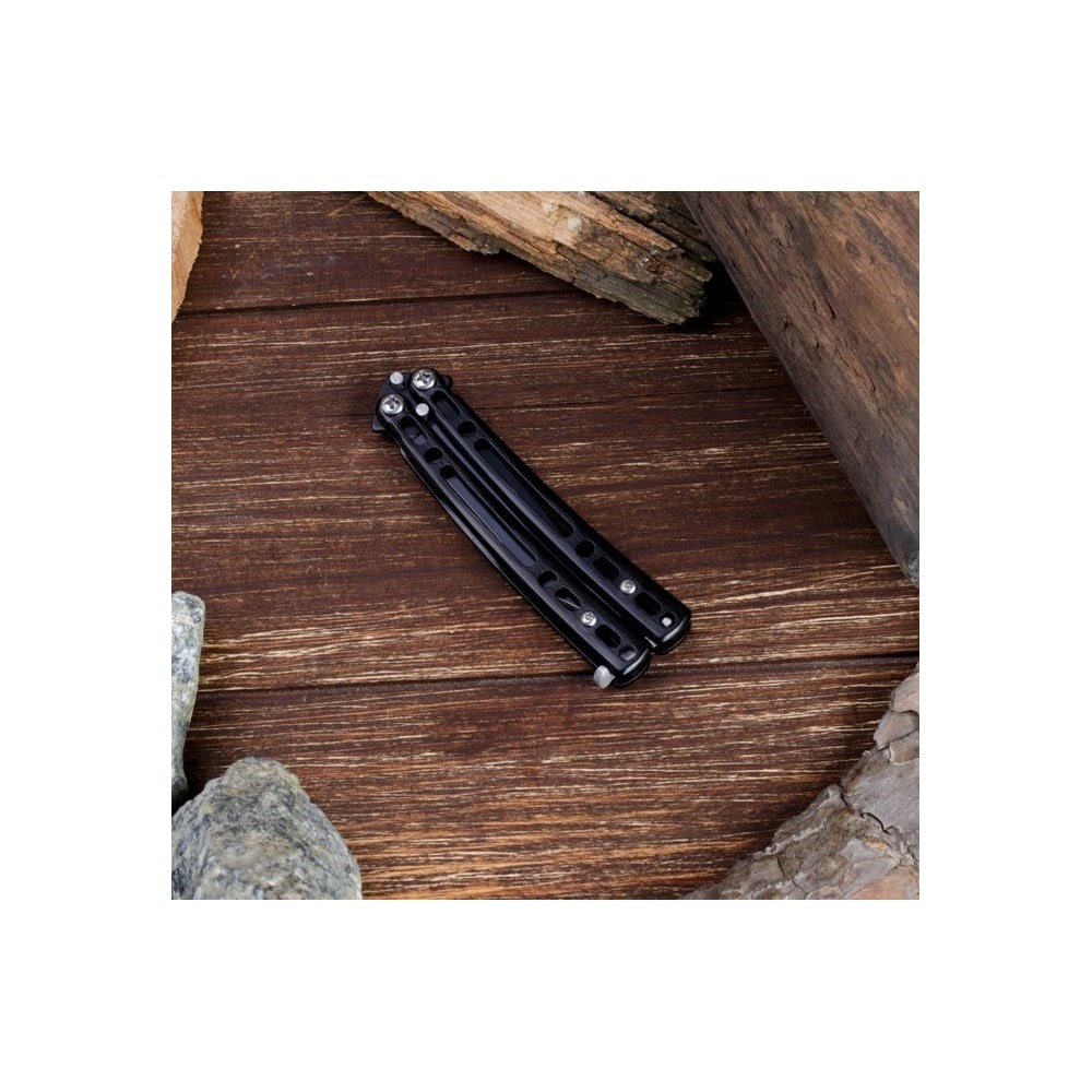 Нож-бабочка Мастер К лезвие 7 см, черный, рукоять с отверстиями, 9см 2301165