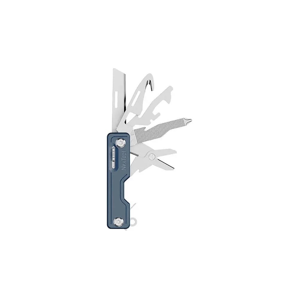 Нож-брелок Nextool Xiaomi Knight EDC синий NE20099 – складной многофункциональный нож 10 в 1. Вес составляет всего 88 грамм, а размеры настолько малы, что его можно использовать как брелок для ключей. Мультитул незаменимая вещь в повседневной жизни, в походе, на охоте или рыбалке. Корпус состоит из прочного, матового ABS пластика, который обволакивает высокопрочную сталь марки 20Cr13 (корпус) и 30Cr13 (нож). Марка стали 30Cr13 (производство Германия) нержавеющая (коррозионно-стойкая). Перечень функционала: нож (длина лезвия 5 см), аварийный молоток для разбивания стекла, открывалка консервных банок, стропорез (разрежет ремень, веревку, шнурки), ножницы, держатель для телефона (вертикальный и горизонтальный), ключ для извлечения сим-карты, напильник, открывалка для бутылок, отвертка.