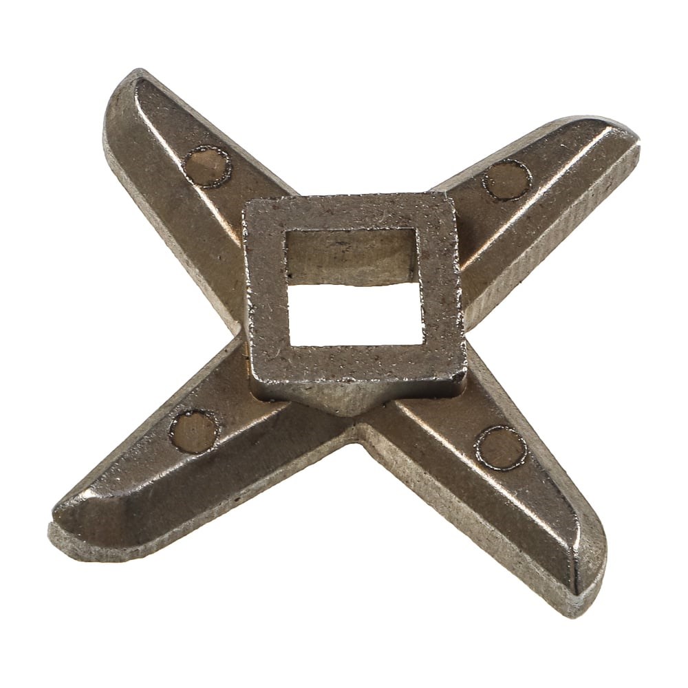 Нож универсальный для алюминиевой мясорубки. Выполнен из прочного металла, отлично заточен и прослужит вам действительно долгое время. Перед первым использованием нужно установить новый нож и решетку на мясорубку и прокрутить две-три минуты нож и решетку насухую (без продуктов), постепенно увеличивая затяжку до максимальной. После самозаточки промыть нож и решетку и начать использование.