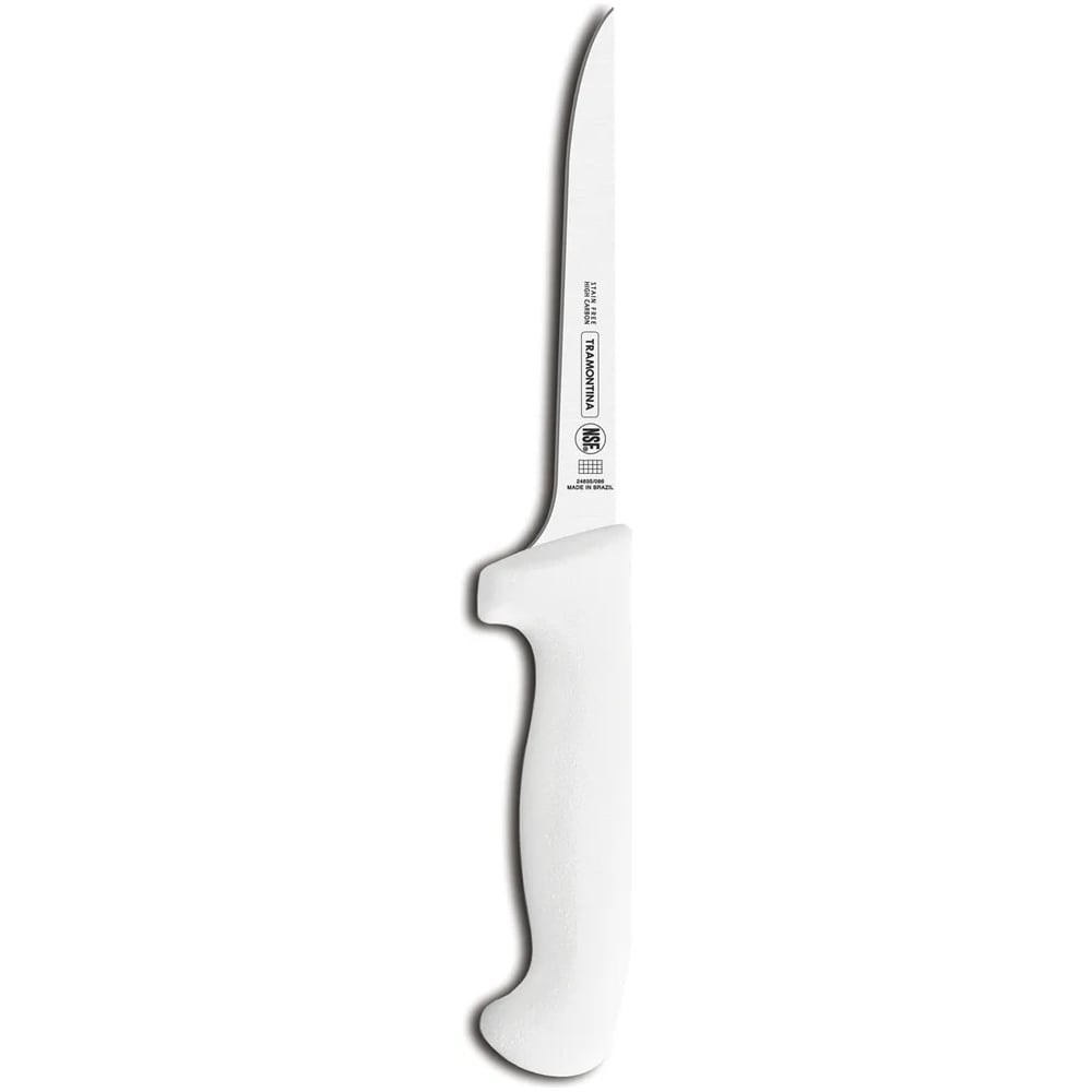 Ножи Tramontina Professional Master подразумевают очень интенсивную ежедневную нагрузку профессионального применения, поэтому имеют высокий запас прочности. Долговечный и обладающий отличной способностью сохранять заточку клинок с полипропиленовой рукояткой, с встроенной антибактериальной защитой, которая не позволяет развиваться грибку и бактериям. Ручка и шейка каждого ножа разработана с учетом формы руки и вида выполняемых работ, что обеспечивает максимально комфортное нарезание продуктов, разделку мяса или рыбы. Защита Microban не наносится сверху, она добавляется непосредственно в состав полипропилена, из которого изготавливаются рукоятки, поэтому действие антимикробного компонента продолжается так же долго, как и жизнь ножа, она не смывается моющими средствами и не пропадает после мытья в посудомоечной машине. Рукоятка с шероховатым напылением для предотвращения скольжения ножа во время использования. V-образная форма клинка гарантирует легкую и идеально точную нарезку.