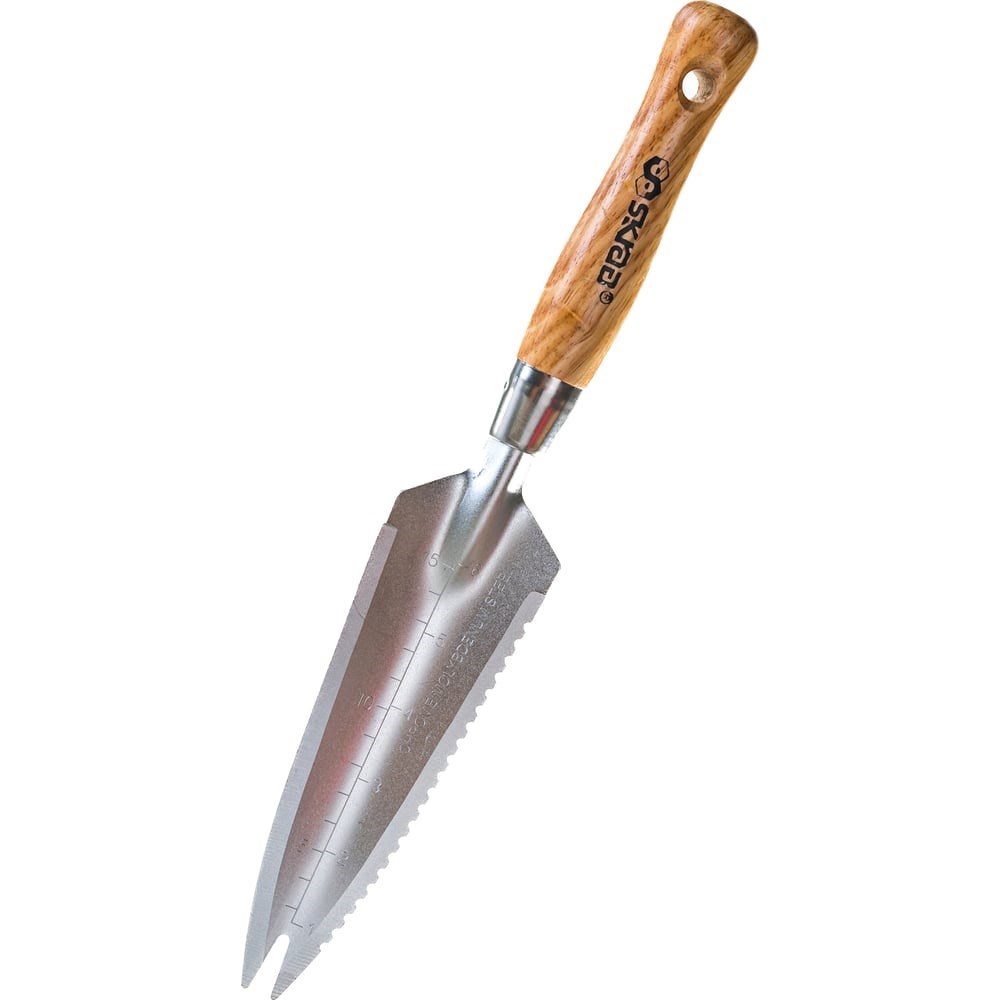 Нож для удаления сорняков SKRAB 335мм с д/ручкой Cr-MO 28080 помогает садоводу легко избавиться от нежелательных сорняков, в том числе одуванчиков,на грядке, клумбе, цветнике без трудоёмкого перекапывания земли. А так же подходит для рыхления земли, подготовки лунок для рассады и т.п. Нож для удаления сорняков выполнен из хром молибденовой стали, имеет антикоррозийное покрытие, шкалу глубины 150 мм, удобную деревянную ручку.