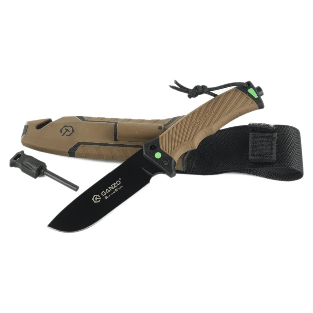 Нож с паракордом Ganzo G8012V2-DY — нескладной клинок для выживания, который выдерживает повышенные нагрузки. Он предназначен для использования в полевых условиях, так как обладает повышенной прочностью клинка и надежностью конструкции. Лезвие изготовлено из высокоуглеродистой стали 8CR13, которая устойчива к появлению коррозионного налета при длительном воздействии влаги и обеспечивает качественный рез. Рукоять изготовлена из ABS-пластика, который превосходит другие виды пластмассы по ряду качеств: он характеризуется высокой ударопрочностью, стойкостью к деформации и невосприимчивостью к жирам, щелочам, углеводородам и другим химическим соединениям. Нож идет в комплекте с фирменными ножнами, которые изготовлены из ударопрочного пластика и нейлона.
