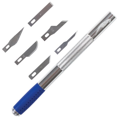 Нож макетный ОСТРОВ СОКРОВИЩ, 6 разновидностей лезвий, металл, пластиковый футляр, 237161
