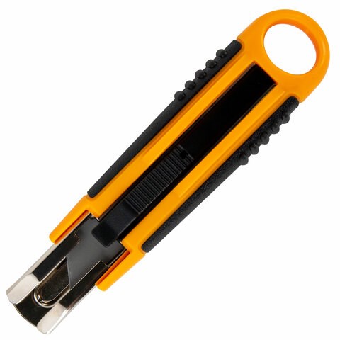Трапециевидное лезвие шириной 18 мм позволяет использовать его для резки более плотных и тонких материалов. Нож снабжен возвратной пружиной и антискользящими вставками. Может использоваться при отделочных работах или в домашнем хозяйстве при разрезании толстого и плотного гипсокартона или вязких ковровых покрытий. Затупившееся лезвие можно поменять, тем самым вернув ножу былую остроту.