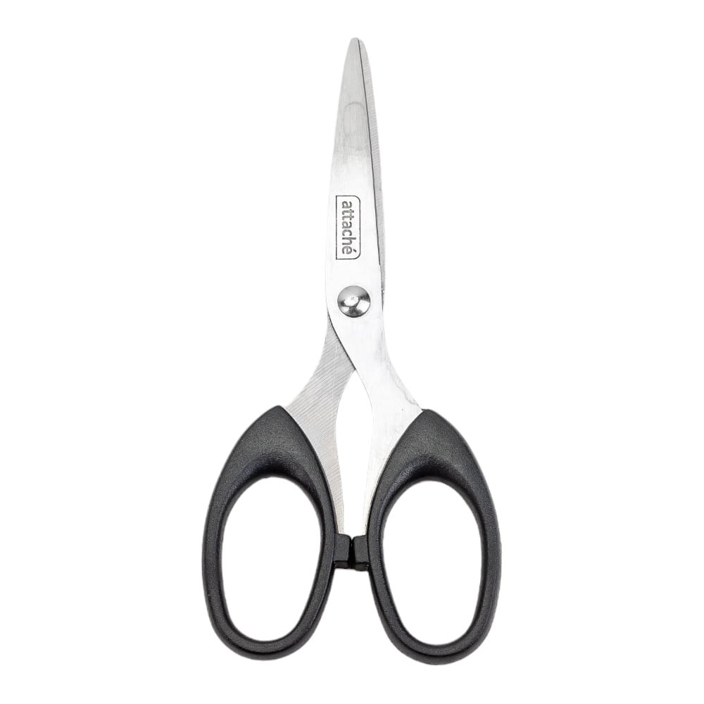 Ножницы с пластиковыми симметричными ручками Attache 140 мм, черный 1100223 предназначены для работы с бумагой, картоном, тканью. Пластиковая эргономичная рукоятка обеспечивает комфортную работу с материалами. Тупоконечное лезвие безопасно при использовании и хранении.