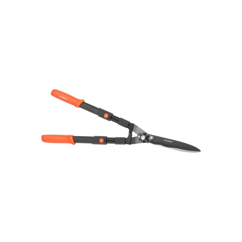 Ножницы для живой изгороди PATRIOT CH 875 777006875 оснащены плоскими лезвиями и удобной системой передачи энергии от рукоятей к режущим кромкам. Волнообразная поверхность исключает зажевывание при резке тонких веток или одновременном перерезании нескольких веток одновременно. Для защиты пальцев от прищемления есть специальный стопор, который не дает рукояткам полностью сомкнуться.