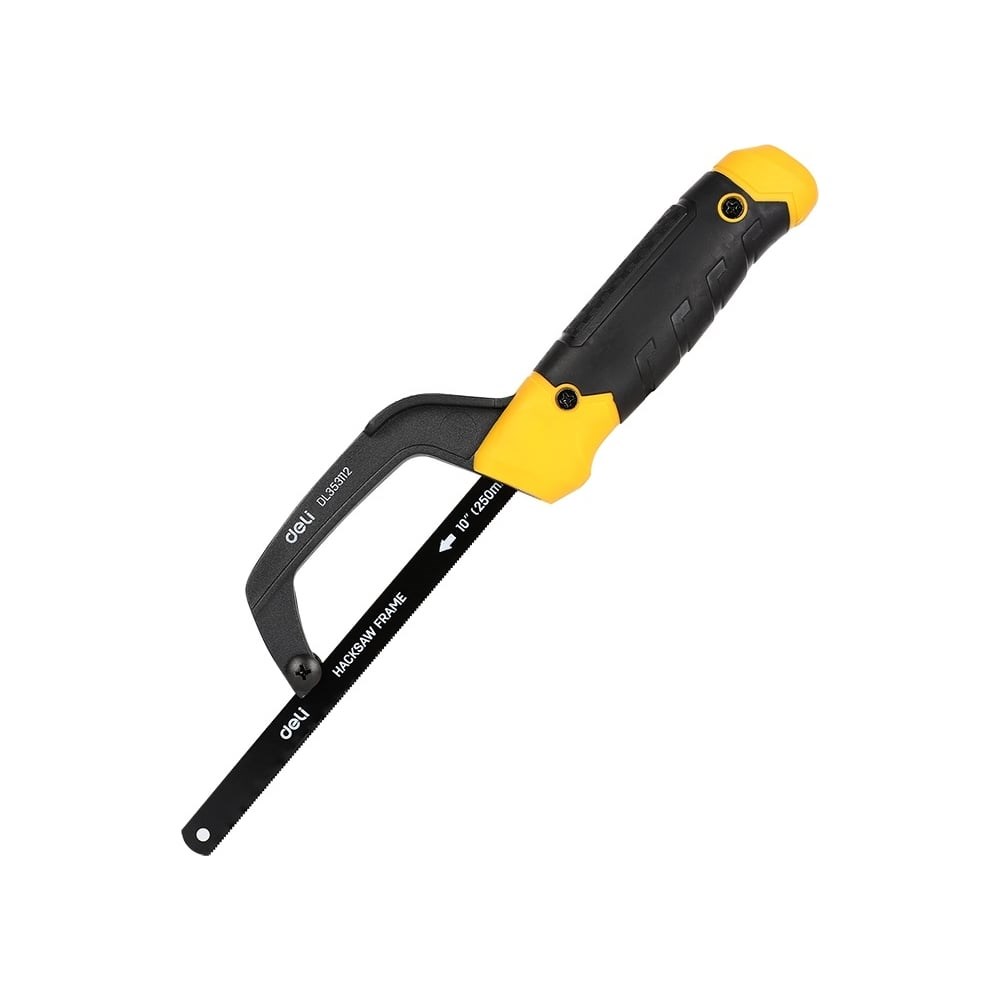 Ножовка-ручка по металлу Deli DL353112 предназначена для распила заготовок из металла, труб, профилей, меди, пластмассы, алюминия, нержавеющей стали и пр. Корпус пилы изготовлен из алюминиевого сплава, а режущее полотно из высококачественной биметаллической стали. Материал отличается высокой прочностью и долговечностью. Передняя часть подходит для распила в узких и труднодоступных местах. Благодаря прорезиненной рукоятке пила удобно лежит в руке и не скользит во время работы.