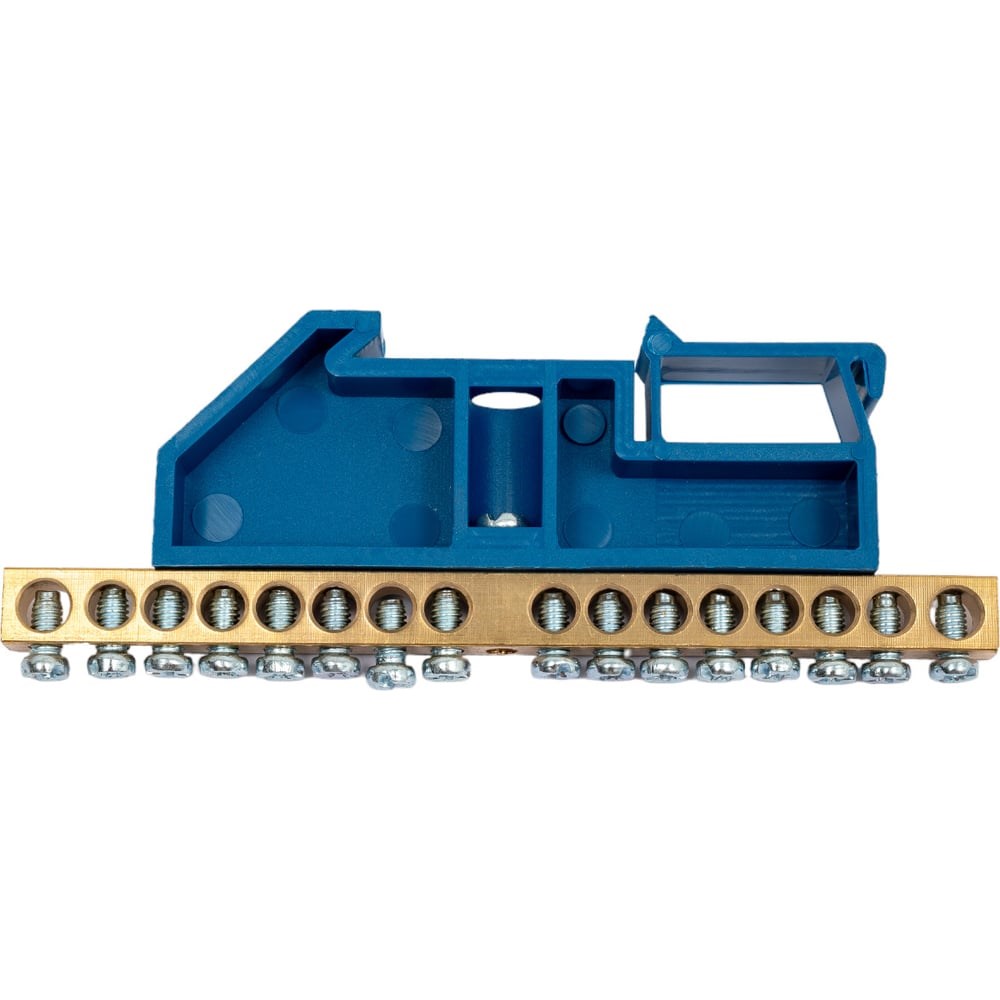 Нулевая N шина с синим изолятором на DIN-рейку REXANT 6x9 мм стойка большая 16 групп 11-2344 предназначена для электрического и механического соединения нулевых, защитных и фазных проводников. Выполнена из латунной шины, установленной на пластиковый изолятор, изготовленный из самозатухающего пластика. Номинальное напряжение: 450 В. Максимальное поперечное сечение проводника: 16 мм2. Температура эксплуатации: -40...+50 °C. Среднее значение относительной влажности эксплуатации не более 90%.