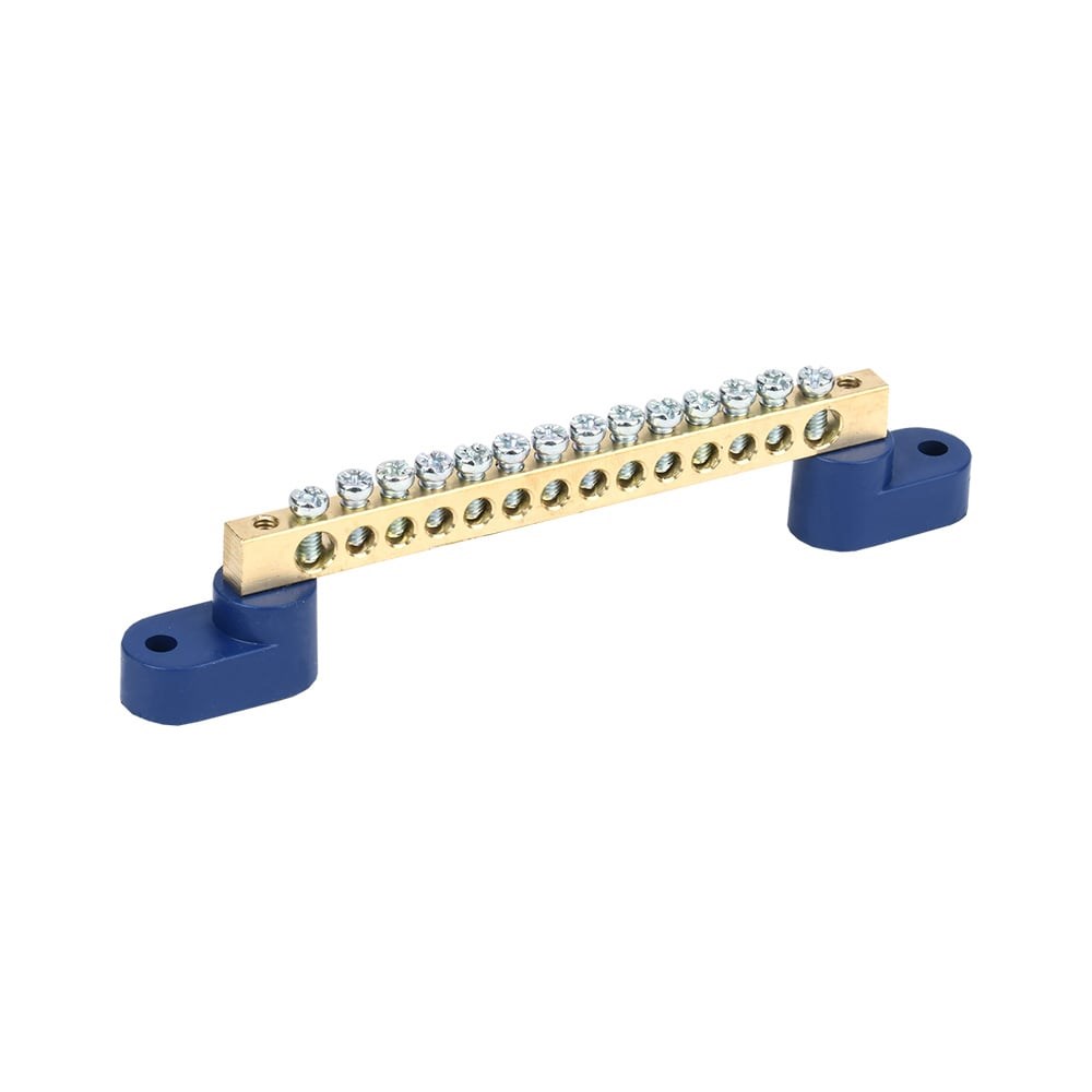 Нулевая N шина на двух угловых синих изоляторах REXANT 6х9 мм 14 групп 11-2329 предназначена для электрического и механического соединения нулевых, защитных и фазных проводников. Выполнена из латунной шины, установленной на пластиковые изоляторы, изготовленные из самозатухающего пластика. Номинальное напряжение: 450 В Максимальное поперечное сечение проводника: 16 мм2. Температура эксплуатации: от -40 до +50 °C. Среднее значение относительной влажности эксплуатации не более 90%.