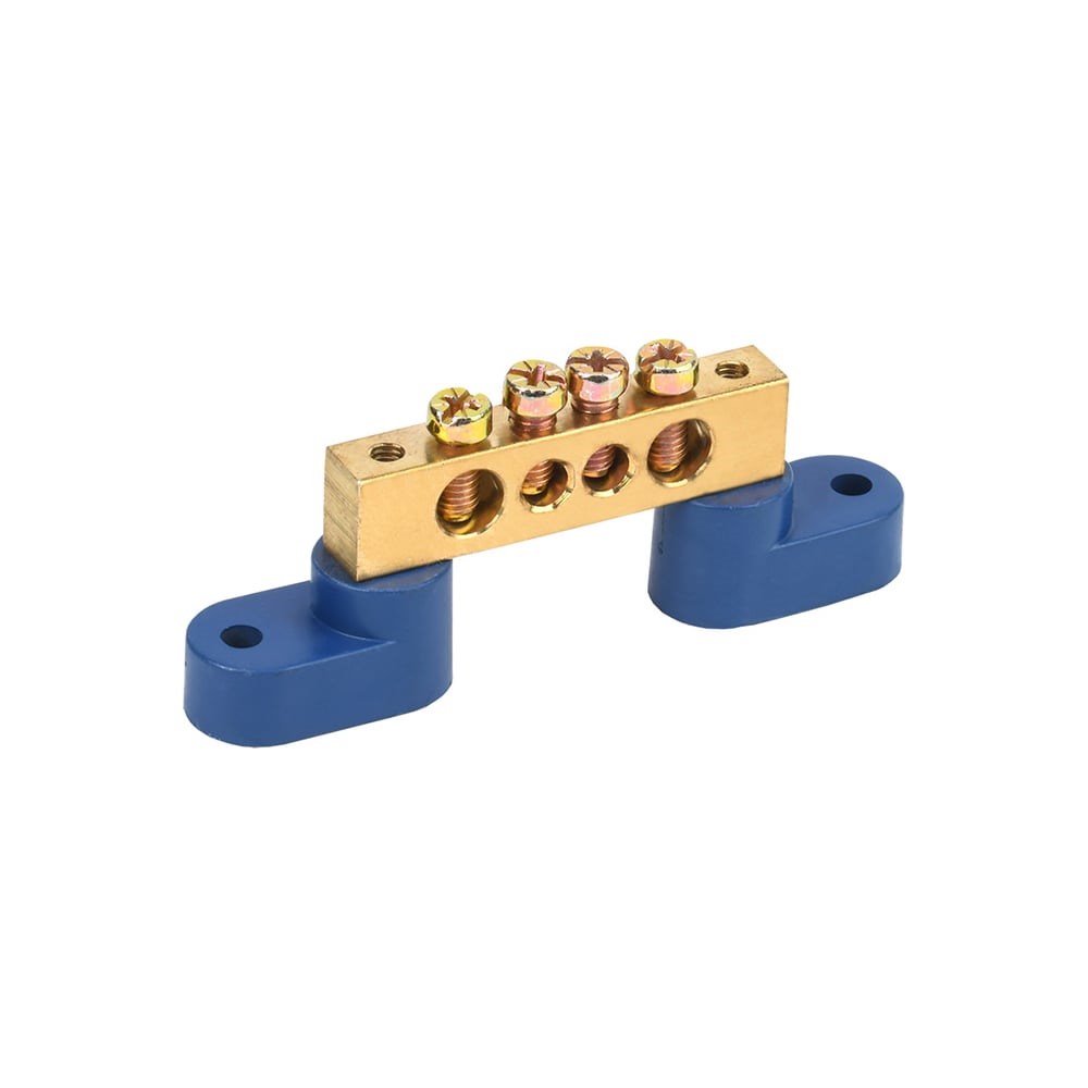 Нулевая N шина на двух угловых синих изоляторах REXANT 8х12 мм 4 группы 11-2331 предназначена для электрического и механического соединения нулевых, защитных и фазных проводников. Выполнена из латунной шины, установленной на пластиковые изоляторы, изготовленные из самозатухающего пластика. Номинальное напряжение: 450 В Максимальное поперечное сечение проводника: 25 мм2. Температура эксплуатации: от -40 до +50 °C. Среднее значение относительной влажности эксплуатации не более 90%.