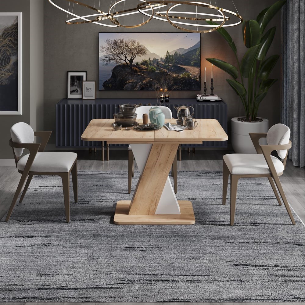 Обеденный стол "Люксембург" тип 3 - благодаря своей необычной форме способен добавить стиль и уют в кухонный интерьер. Оригинальный дизайн, модные цветовые исполнения точно привлекут Ваше внимание, и Вы не сможете пройти мимо этой стильной модели. Стол идеально впишется в интерьер кухни, оформленной в современном стиле. Интересный дизайн. Столы на одной опоре все чаще можно встретить в домах, оформленных в современном стиле. Необычная форма опоры стола "Люксембург" тип 3 способна сделать обстановку неповторимой и модной, его оригинальность привлечёт внимание всех без исключения. Функциональность. Новинка имеет надежный ручной синхронный механизм раздвижения со вставкой, которая укладывается вручную. Это выручает в моменты прихода гостей, которых хочется разместить свободно и с комфортом. Универсальность. В оформлении применяются актуальные варианты декора, что подчеркивает универсальность стола. Модная текстуры "Дуб крафт золотой" придает ощущение тепла и уюта в кухонном интерьере.