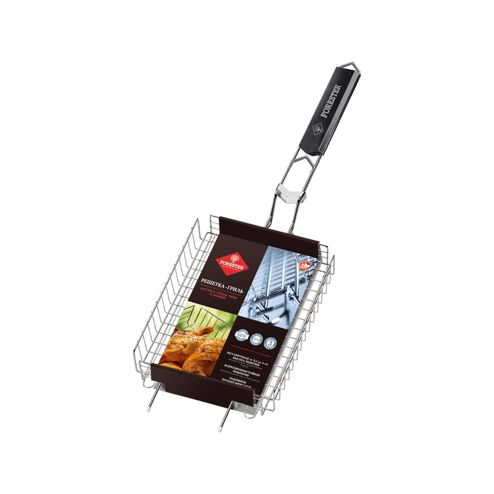 Объемная малая решетка-гриль FORESTER BQ-N11 предназначена для запекания кусочков мяса, птицы, рыбы или овощей различной толщины. Известно множество рецептов приготовления вкусной пищи на решётке. Объёмная форма этого приспособления существенно расширяет выбор блюд - например, овощи и куриные окорочка можно запекать целиком, высота варьируется от 0.5 до 4.5 см. Это универсальное приспособление имеет простую и понятную конструкцию. Изделие выполнено из стали c коррозионностойким покрытием, поэтому прослужит много лет. Рабочая поверхность жаропрочная - не деформируется от нагревания. Держатель решётки оснащён деревянной рукояткой, которая защищает руки от ожогов во время приготовления пищи и обеспечивает удобный хват при переворачивание на другую сторону. Прочное фиксирующее кольцо предохраняет конструкцию от раскрывания - кусочки мяса не окажутся в углях. Эта модель сочетает современный дизайн, практичность и вместительность - размер жарочной поверхности 26x20 см. Решётка весит всего 570 грамм и занимает немного места -67x31.5x36 см - её удобно брать с собой на дачу, в поход, на пикник.