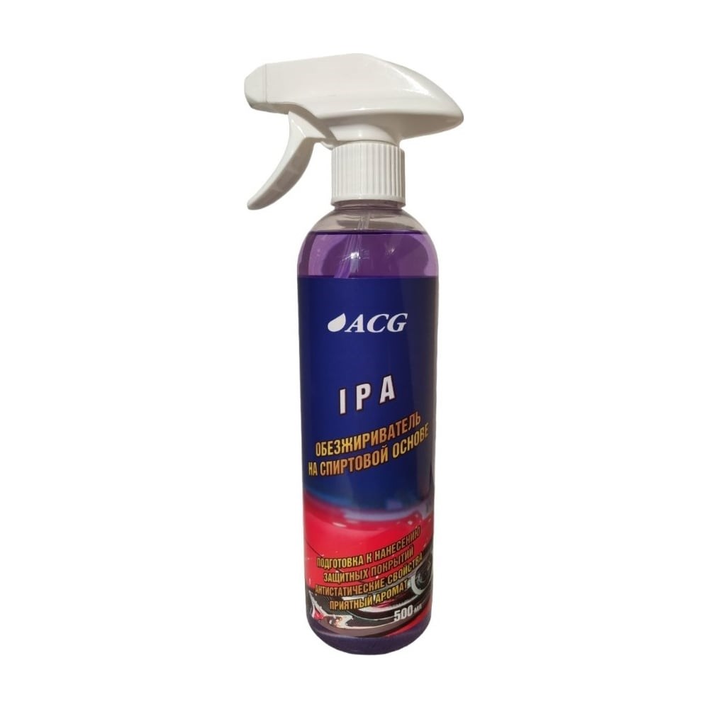 Обезжириватель-антисиликон на спиртовой основе ACG IPA 500 мл 1024698 - многоцелевой, легкий в применении высококачественный спиртосодержащий обезжириватель ЛКП для подготовки поверхностей автомобиля к нанесению защитных покрытий. Обладает приятным ароматом. Средство легко наносится, эффективно удаляет маслянистый и прочий налет и полностью удаляется с помощью микрофибры, придавая поверхности необходимые антистатичные свойства. Обезжириватель-антисиликон IPA рекомендуется в обязательном порядке применять перед нанесением любых кварцевых и керамических покрытий для достижения максимальных защитных свойств и долговечности. Состав готов к применению. Не требует разведения.