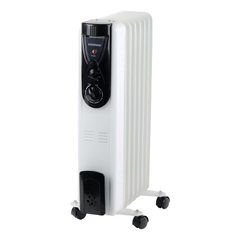 Обогреватель масляный ВЫСОКОЙ ЭФФЕКТИВНОСТИ SONNEN DFB-07BS, 1500 Вт, 7 секций, 5 МАСЛОКАНАЛОВ, 455312