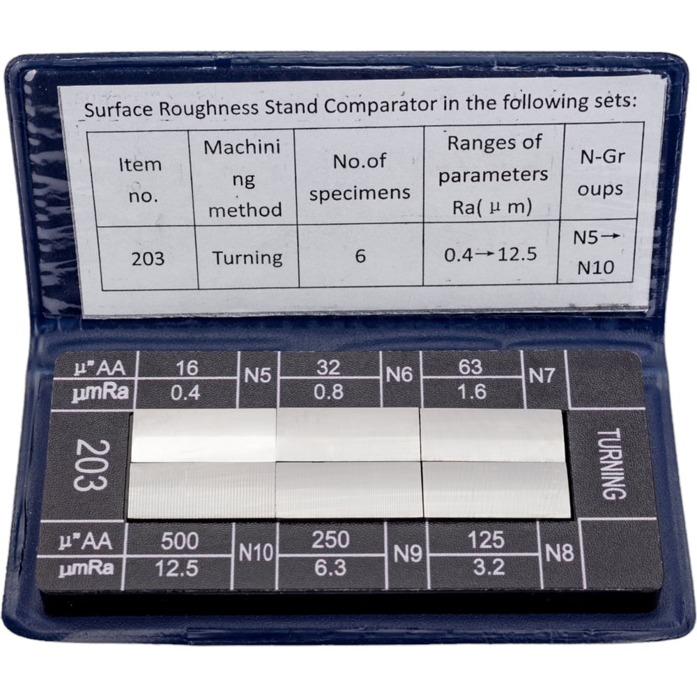 Набор образцов шероховатости поверхности из 6шт, Ra 0.4 - 12.5 GRIFF D125011 разработан для визуального и тактильного сравнения поверхностей, с различным качеством и точностью обработки. В наборе имеются образцы, полученные путем точения.