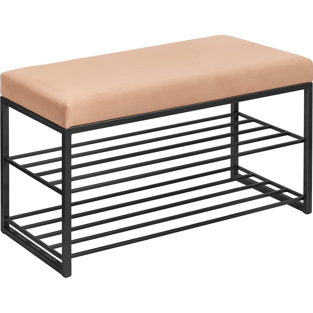 Обувница GARDA с черным основанием и велюровой подушкой. Стильная банкетка подойдет для прихожей, спальни, гостиной и кабинета. Обувница с сиденьем в прихожую не займет много места, но будет максимально функциональной благодаря двум полкам и скамье, обитой велюром. Основание обувницы изготовлено из стали с полимерным покрытием. Стальной каркас изготовлен из профильной трубы 20х20. Собственное производство обеспечивает надежность и эстетику сварных швов металлической мебели. Банкетка с велюровой подушкой отличается элегантным видом и комфортной посадкой. Мягкая обивка с высокой износостойкостью, прошла тест Мартиндейла — 35 000 циклов. Бархатистая ткань легко чистится от загрязнений, для ухода разрешена сухая и влажная чистка. Металлический каркас выдерживает суммарный вес до 160 кг, а порошковая окраска на собственном производстве гарантирует долговечное использование и устойчивость к внешним повреждениям. Стильная банкетка-пуф без спинки с мягким сидением и полкой для обуви подойдет для прихожей, спальни, гостиной, кухни и кабинета. Отлично будет смотреться в качестве прикроватной банкетки для дома. Можно разместить в офисе, зале, салоне, фотостудии, гостинице, баре, клубе, кафе и ресторане. Банкетка отлично сочетается со стеллажами KARIN и пуфами OMEGA. Банкетку-обувницу доставляем в собранном виде в надежной упаковке.