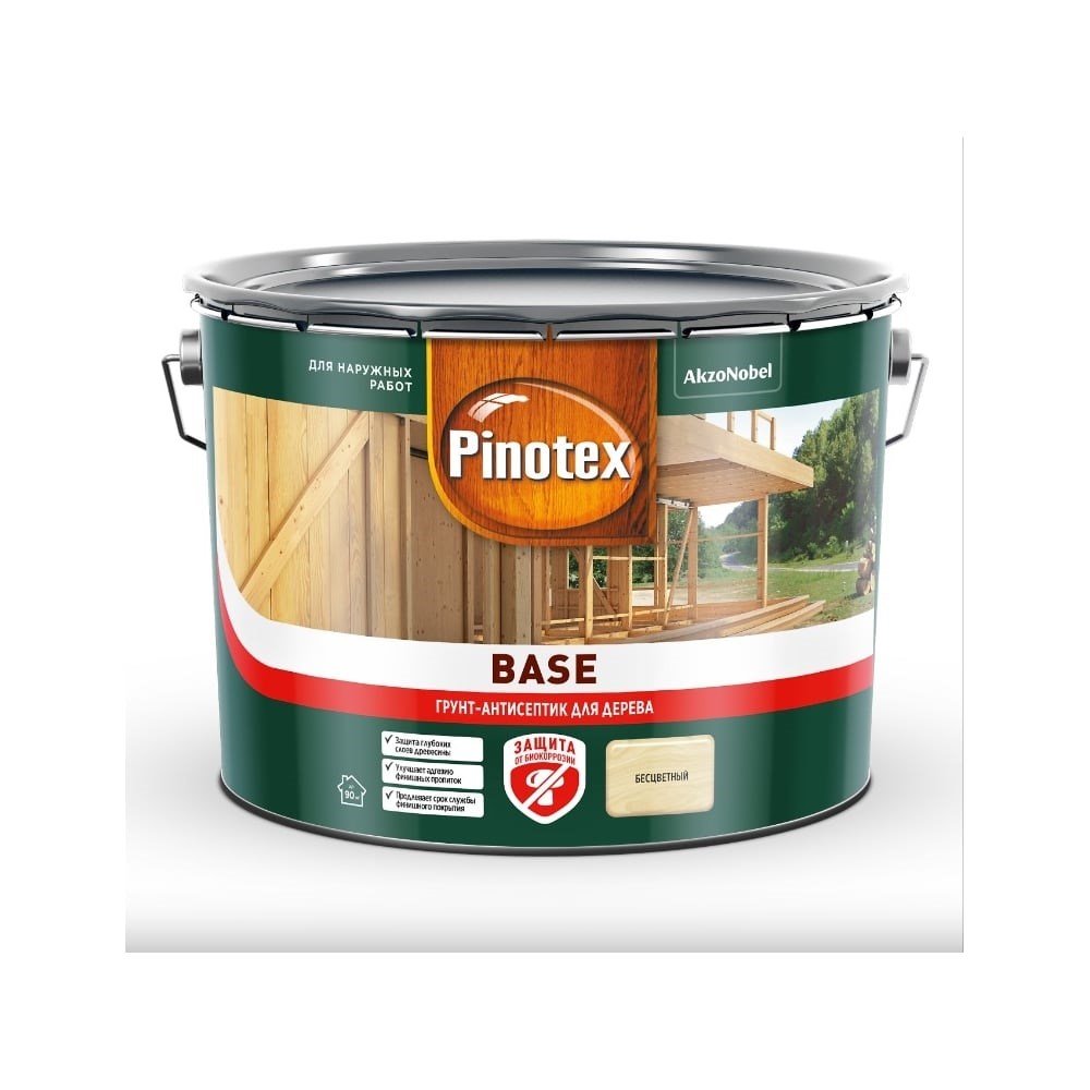 Особо действенная деревозащитная грунтовка PINOTEX BASE (с защитными свойствами; 9 л) 5794890 - бесцветная высокоэффективная деревозащитная грунтовка для обработки наружных поверхностей перед применением финишных пропиток и лака Pinotex. Улучшает качество деревянной поверхности, выравнивая впитывающую способность древесины и обеспечивая равномерное нанесение последующих слоев финишных пропиток или лака. Грунт значительно улучшает адгезию финишных материалов, повышая долговечность покрытий и их декоративные свойства. Обладает высокой проникающей способностью, эффективно защищая глубокие слои древесины от плесени, синевы и гнили. Грунт является частью системы покрытий для наружных работ. Комплексное использование грунта и пропиток обеспечивает двойную активную защиту поверхности древесины. Область применения: Для наружных работ. Подходит для грунтования новых и очищенных от предыдущих покрытий поверхностей из пиленой и строганой древесины перед ее последующей обработкой финишным покрытием Pinotex. Особенности применения: Перед применением перемешать. Произвести подготовку поверхности (отшлифуйте, уберите пыль тканью). В случае, если на поверхности гниль, смола или смоляные карманы, пятна ржави, дубильные вещества тщательно отшлифуйте поверхность, обработайте блокирующим грунтом. Рекомендуется наносить в 2 слоя при температуре не ниже +10°C и не выше +25°C, относительной влажности воздуха 80%, влажности древесины 18%. Разбавление не требуется.