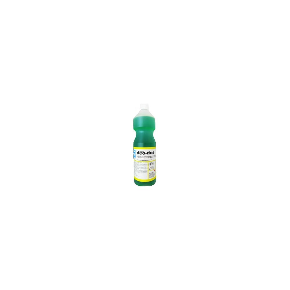 Очиститель DEO-DES Pramol 4306.201- высококонцентрированное средство для санитарных зон, душевых и раздевалок. Применяется на любых моющихся поверхностях: кафель, фарфор, керамика, пластик, хром, стекло. Средство удаляет загрязнения, частично уничтожая бактерий в области обработки. После уборки с использованием очистителя DEO-DES в помещении надолго остается приятный аромат и ощущение свежести. Для использования необходимо приготовить 1.0-2.0% раствор, который наносится непосредственно на очищаемую поверхность при помощи губки.