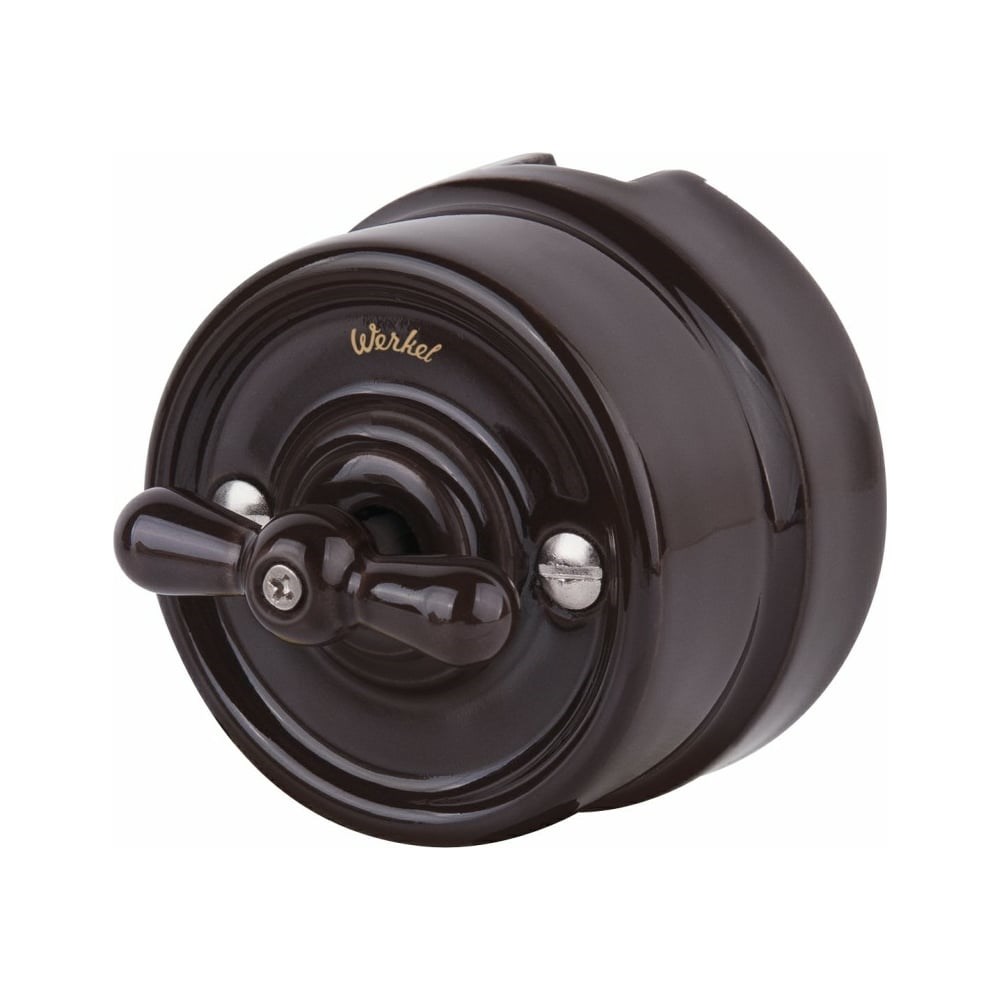 Ретро переключатель одноклавишный (два положения) W5612014 в коричневом цвете 10 А 250 В, 50 Гц является важнейшим элементом любой домашней электросети, служащим для управления света. Выключатель представляет собой механизм с поворотным переключением, имеющий керамический корпус и сменную ручку-барашек.Накладной переключатель не требует дополнительных работ по монтажу отверстий и его можно устанавливать на любые поверхности. Переключатель имеет удобное подключение проводов с сечением от 0.75 мм кв до 2.5 мм кв, которое осуществляется с помощью самозажимного механизма.Керамический корпус обладает высокой механической прочностью, термостойкостью и диэлектрическими свойствами. Выключатель совместим со всеми ретро рамками из коллекций Werkel, характеризуется удобством использования и имеет эстетический внешний вид.