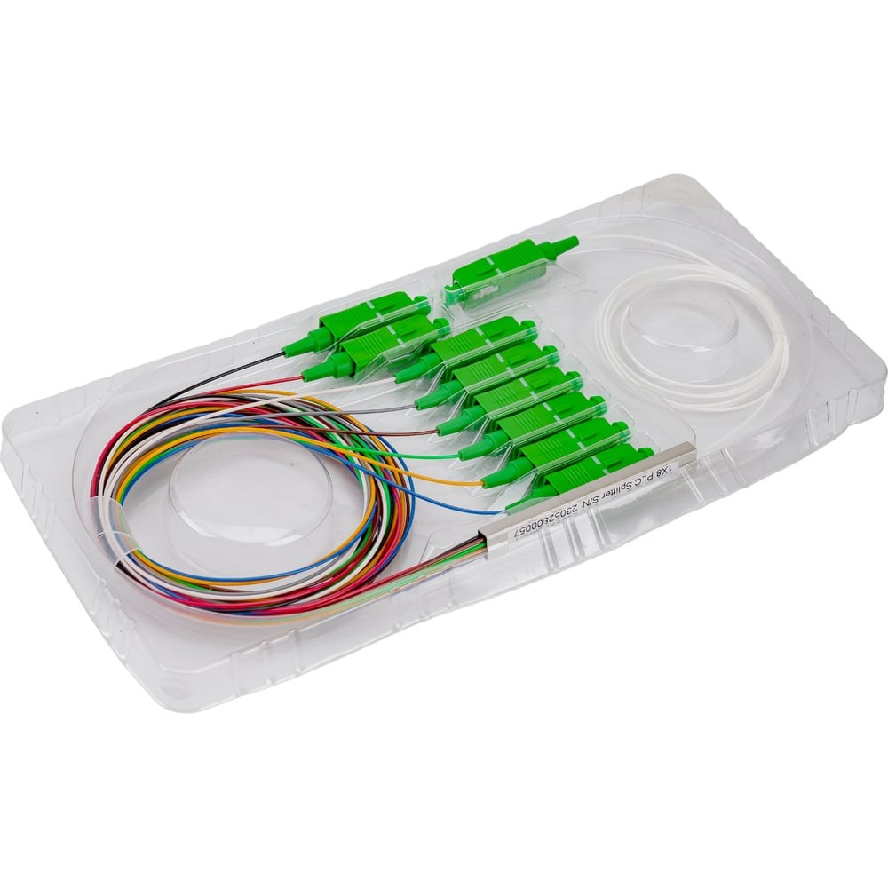 Планарный сплиттер NIKOMAX, 1x8, одномодовый, G.657.A1, SC/APC, 0.9 мм NMF-SPP1X8A1-SCA-M