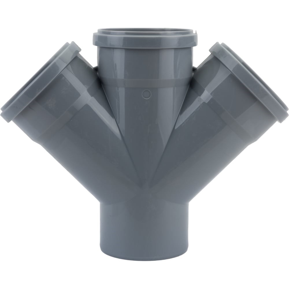 Крестовины обеспечивают подключение дополнительного ответвления к основному трубопроводу диаметром 50 или 110 мм. Диаметр дополнительного ответвления может быть равен диаметру основного трубопровода, например, крестовина 50х50х50/45, или меньше его - крестовина 110х50х50/90. В дробной части обозначения крестовины указывается угол отвода дополнительного ответвления (45о или 90о). Материал крестовины - полипропилен. Применяется при максимальной температуре постоянных стоков - 80ºС (кратковременная - 95ºС). Срок службы - не менее 50 лет.