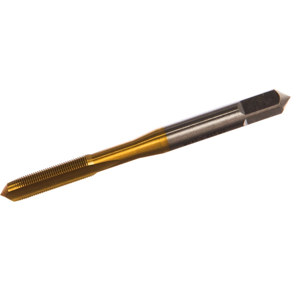 Метчик Эксперт однопроходный машинно-ручной прямая канавка №82 М6*0,5, HSS M2 TIN, ТМ ПрофОснастка. Метчик выполнен по ISO 529, правый, точность 6H, предназначен для сквозных и глухих отверстий. Прямая канавка обеспечивает легкий отвод стружки при обязательном использовании СОЖ. Ресурс использования на любых металлах многократно увеличивается при использовании СОЖ. Покрытие нитрида титана увеличивает поверхностную твердость и износостойкость, а также обеспечивает повышенный ресурс. Также благодаря покрытию метчик может ограниченно использоваться на нержавеющих сталях. Метчик Эксперт HSS M2 TIN имеет один из лучших показателей стоимости нарезания резьбы на одном отверстии на рыке. Общая длина метчика 66 мм, длина режущей части 19 мм, диаметр хвостовика 6,3 мм, посадочный квадрат 5 мм.
