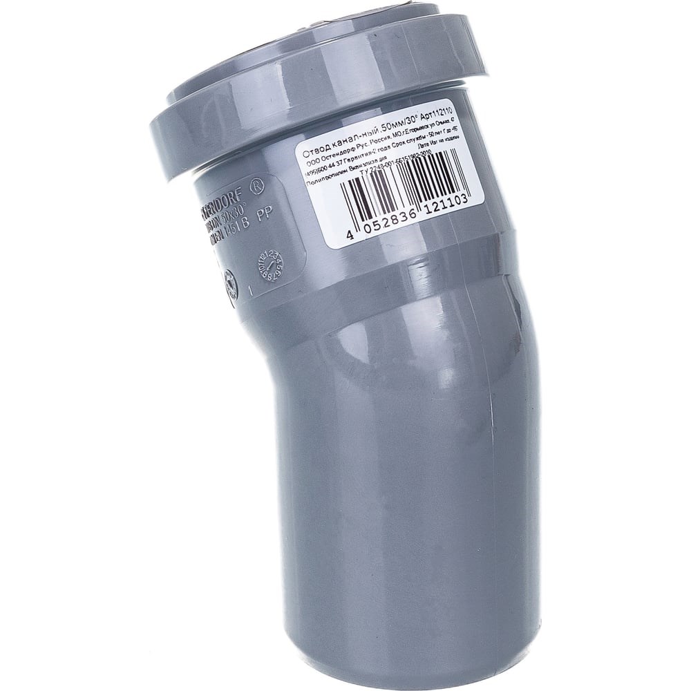 Отвод однораструбный (30°) HTB 50 Ostendorf 112110 применяется для труб внутренней канализации Ostendorf. Изготовлен из полипропилена, устойчивого к воздействию горячей воды и обладающего длительной огнестойкостью. Параметры (см. рисунок): DN 50; Угол α - 30°; Длина Z1 - 9 мм; длина Z2 - 13 мм; Длина l1 - 46 мм.