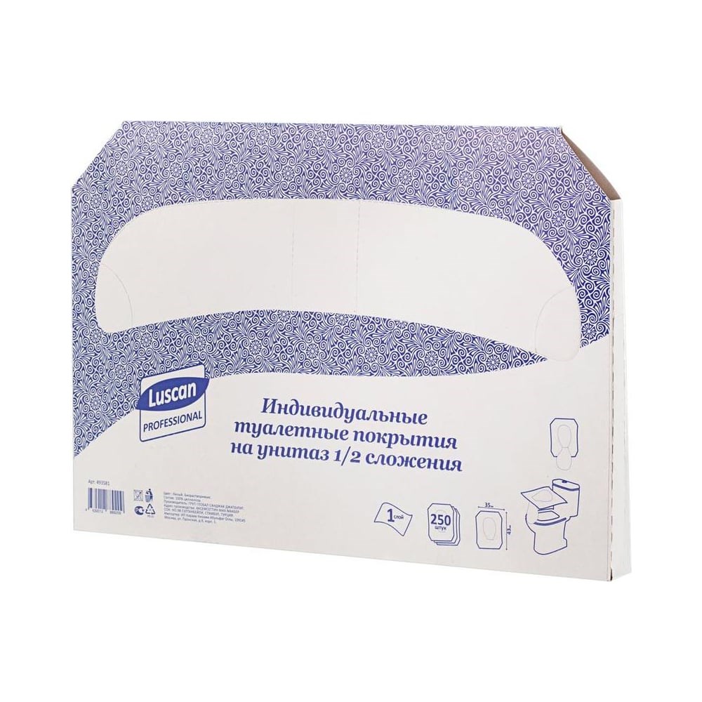 Одноразовые покрытия на унитаз Luscan 250 шт 493581 дополнительные характеристики: Тип сложения - 1/2 Предназначены для использования с унитазами стандартного размера