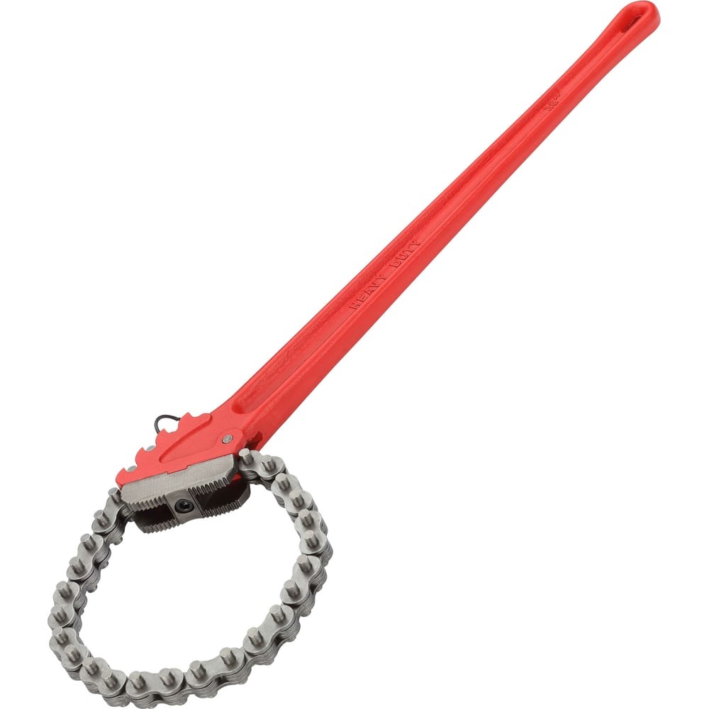 Односторонний цепной ключ с двойными губками, длина 36 дюймов REKON 028436 подойдет для работы с большими объектами и крепежом на трубах значительного диаметра: более 7 дюймов. Для удобства вращения есть специальный упор. Конструкция проста в использовании, имеет оптимальную собственную длину рычага для эффективной работы.