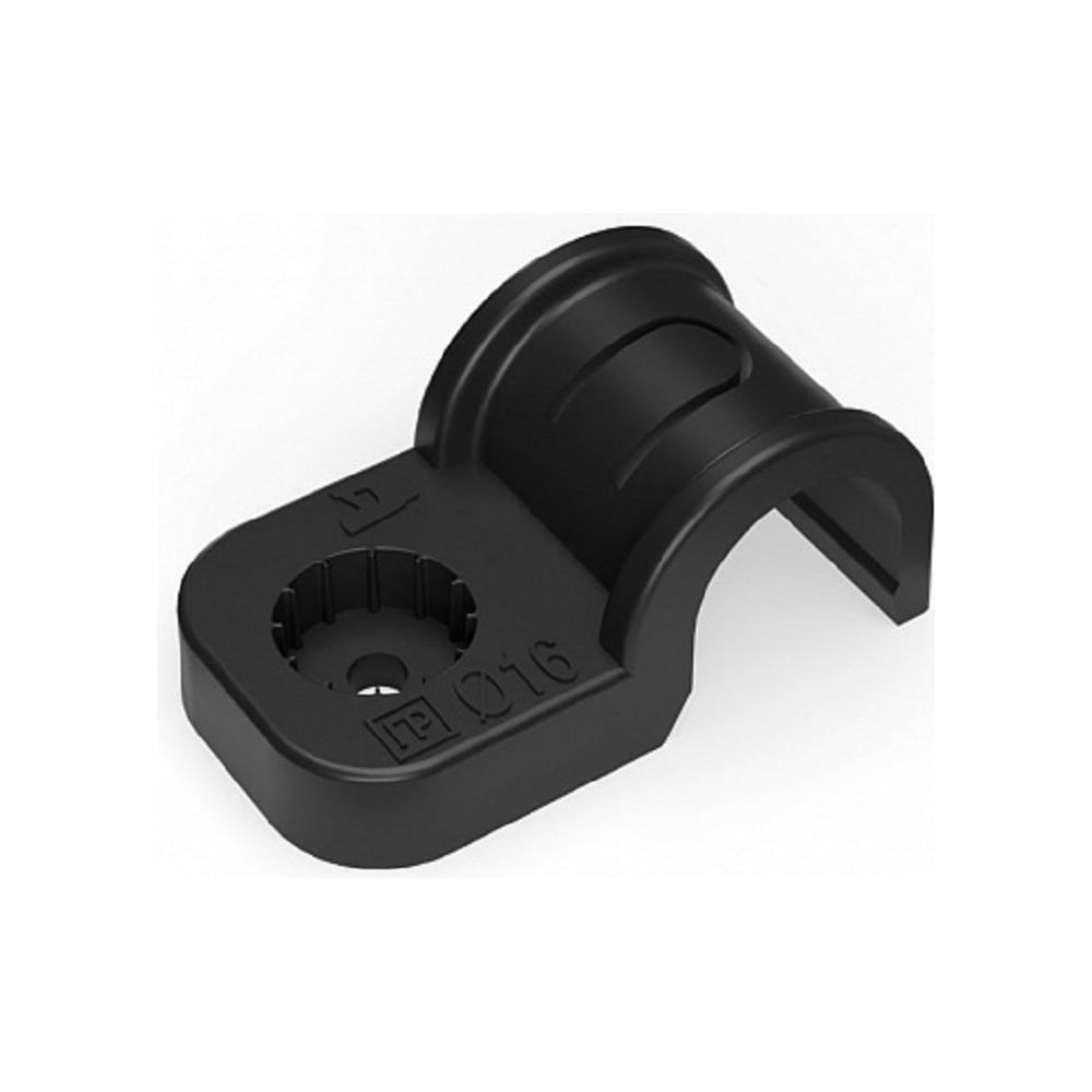 Односторонняя пластиковая крепеж-скоба для прямого монтажа Промрукав черная, в п/э, д 16