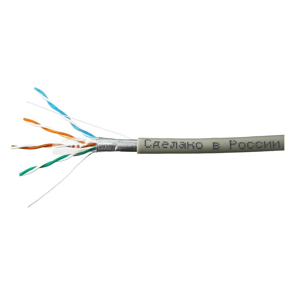 Кабель предназначен для внутренней прокладки, имеет высокое качество передачи сигнала, применяется для организации высокоскоростных кабельных сегментов со скоростью передачи до 1 Гб/с. Экран обеспечивает надежную защиту от внешних электромагнитных полей и уменьшает собственные наводки.Элементы конструкции: 1. Токопроводящая жила – однопроволочная, мягкая медная проволока диаметром 0,46 мм 2. Изоляция проводника – полиэтилен 3. Разрывная нить – капрон 4. Экран – ламинированная алюминиевая фольга 5. Внешняя оболочка – поливинилхлоридТехнические характеристики: – температура эксплуатации от -10°С до +50°С Электрическое сопротивление цепи (двух последовательно соединенных токопроводящих жил рабочей пары) постоянному току при температуре 20°С – не более 19,9 Ом/100 м Эксплуатируется на частотах до 100 Мгц Минимальный радиус изгиба – 8 наружных диаметров кабеляДиаметр изоляции одной жилы 0,87-0,89мм Внешний диаметр кабеля 5,5 +-0,2мм