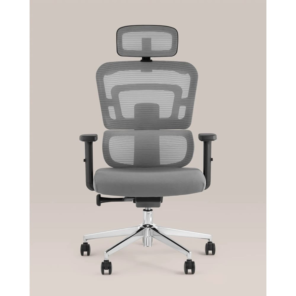 Современное, компактное и функциональное офисное кресло. Удобная спинка оказывает качественную поддержку и позволяет провести в кресле долгое время без усталости. Обивка из сетки на спинке и из сплошной ткани на сиденье смотрится элегантно и стильно - это практичное решение для постоянного использования. Материал не боится повреждений и потертостей, на нем не видны пятна. Удобное положение легко выбрать благодаря механизму регулировки высоты и качания мультиблок. Подлокотники регулируются по высоте. Регулируемый подголовник настраивается по высоте и углу наклона. Крестовина выполнена из металла и выдерживает нагрузку до 120 кг.